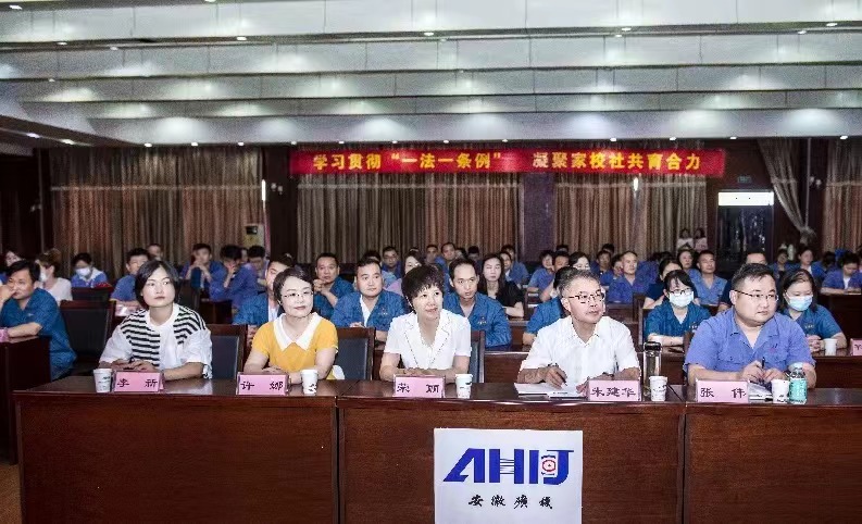 6月30日上午,淮北市“家教伴成長 協同育新人”主題家教公益講座在淮海實業集團安徽礦機公司舉行,市婦聯黨組成員、副主席榮麗,淮海實業集團工會副主席朱建華出席活動,淮海實業集團及下屬各公司職工代表100余人參加活動。